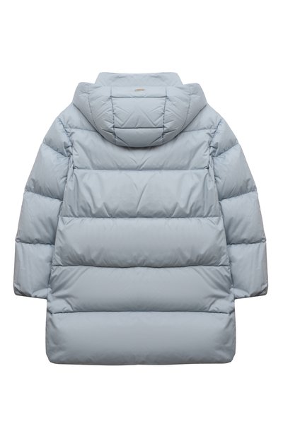 Стеганую куртку с воротником-стойкой и съемным капюшоном выполнили из глянцевого непромокаемого нейлона. Модель на гусином пуху застегивается молнией, боковые карманы – кнопками. Спереди – миниатюрная эмблема бренда.