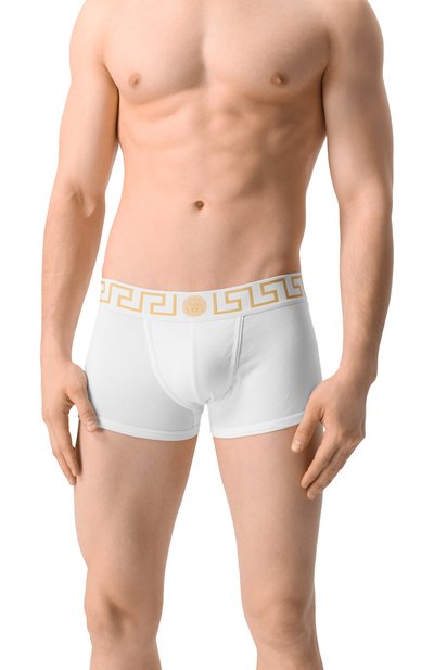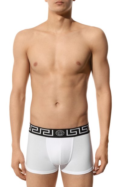 Брифы с плоскими швами выполнили из эластичного органического хлопка джерси. Пояс изделия сшили из вторичного полиэстера и украсили меандровым узором Greca с эмблемой Medusa спереди.