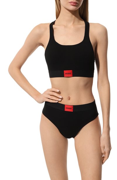 Бра с T-образной спинкой выполнили из эластичного хлопкового трикотажа. Широкий пояс модели украсили золотистым меандровым узором Greca и эмблемой с изображением головы горгоны Медузы.