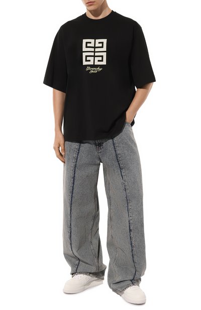 Футболку силуэта oversize изготовили из хлопкового джерси. Спереди модель дополнили логотипом из сетки, который продолжили на спинке. О принадлежности изделия марке говорит и вышитая эмблема 4G.