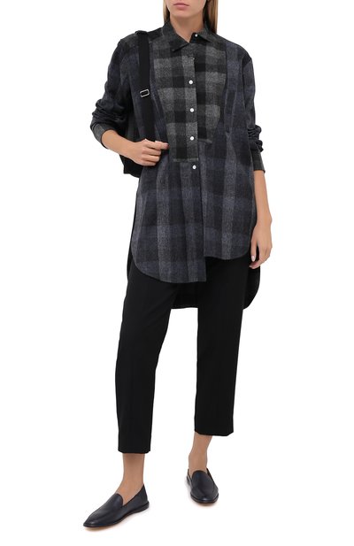 Пенни-лоферы сшили вручную из полированной телячьей кожи и дополнили кожаной подошвой с резиновыми шипами. На язычке — тисненая фирменная монограмма.