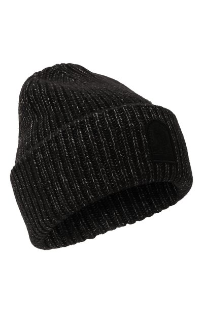 Для создания лаконичной шапки бини использовали фактурный трикотаж, связанный в технике эластичной вязки из меланжевого микса хлопка и шерсти. Широкий отворот украсили брендированным патчем.