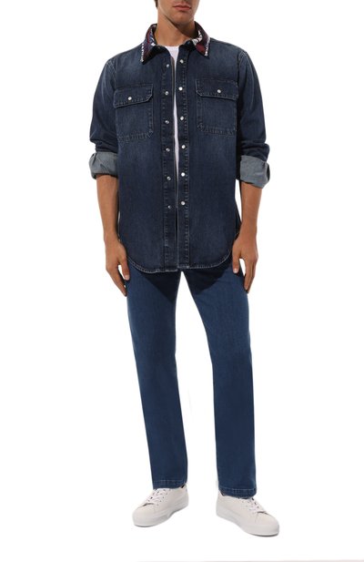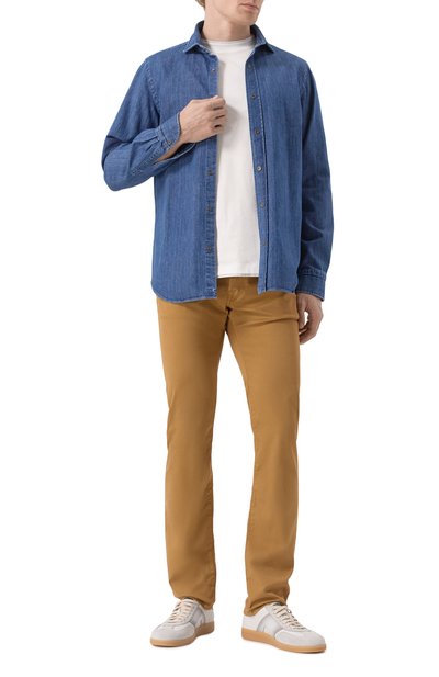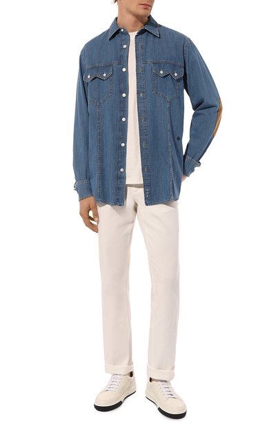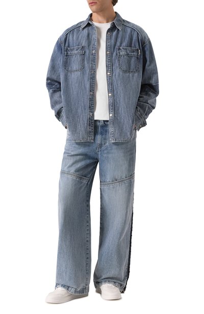 Наши стилисты предлагают сочетать джинсовую рубашку с однотонными футболкой, брюками и слипонами. Выбеленную модель с кокеткой, бантовой складкой и фирменной биркой сзади сшили из облегченного денима.