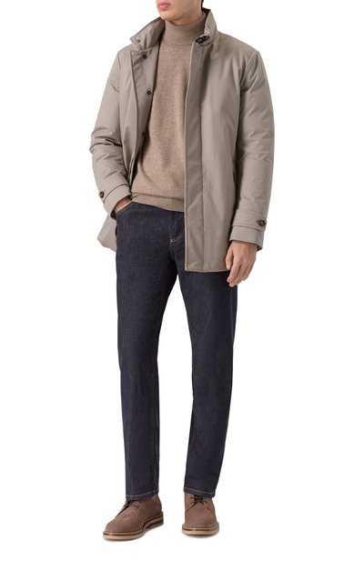 Джинсы из чистого хлопка украсили брендированным патчем на монетном к армане и крупной нашивкой в форме знаковой пластины — на заднем. Наши стилисты предлагают собрать повседневный образ, дополнив брюки свитером, бомбером и кедами.
