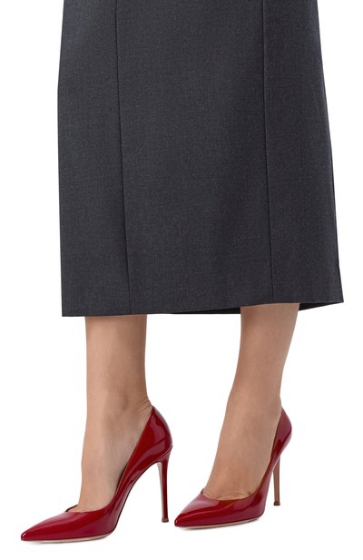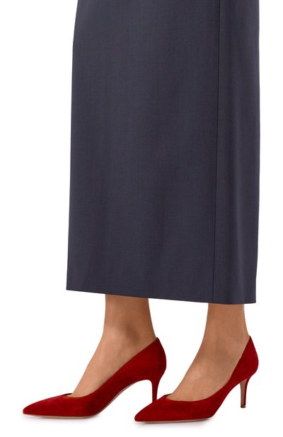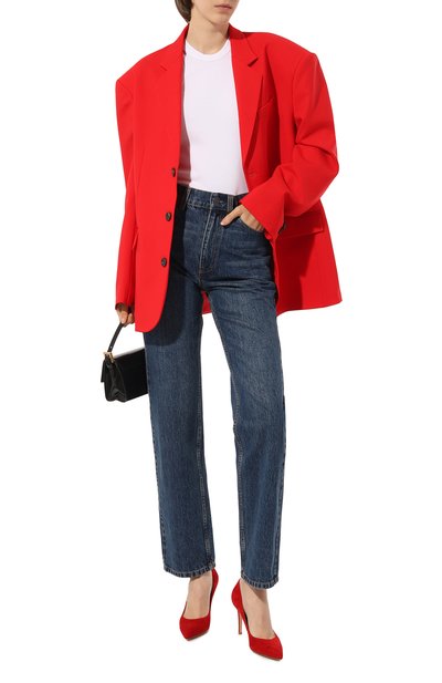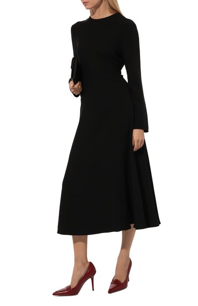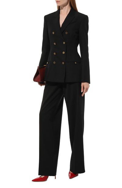Туфли VLogo Studio украсили латунной архивной эмблемой в основании клиновидного выреза. Модель с зауженным квадратным мысом, на высокой шпильке сшили из телячьей кожи.