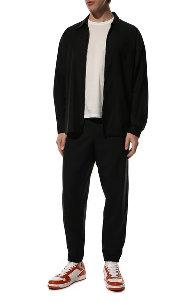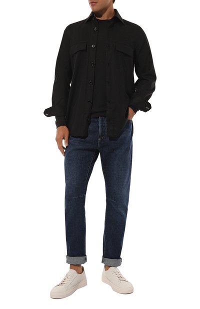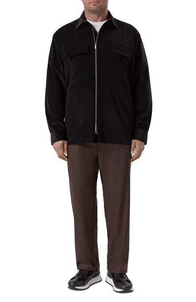 Рубашка из хлопкового флиса с добавлением нейлона справится с ролью легкой куртки. Модель с отложным воротником, двумя боковыми и одним нагрудным карманом, украшенным логотипом, застегивается молнией.