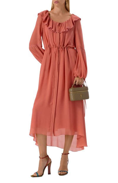 Платье-кейп идеально подойдет для вечера в театре или ужина в ресторане. Модель из струящегося вискозного креп-джерси дополнили спереди высоким разрезом и глубоким каплевидным вырезом с потайным крючком.