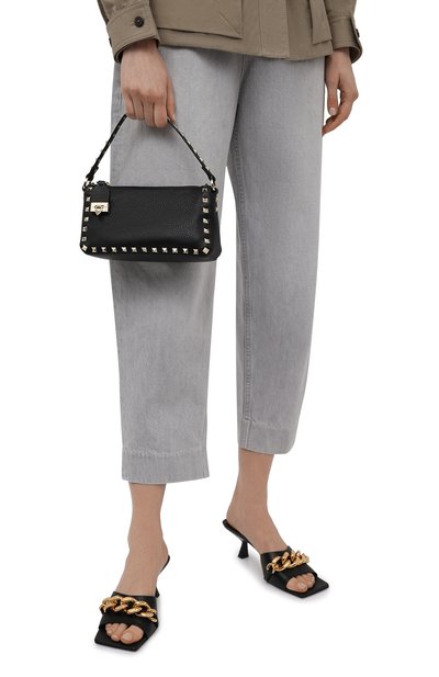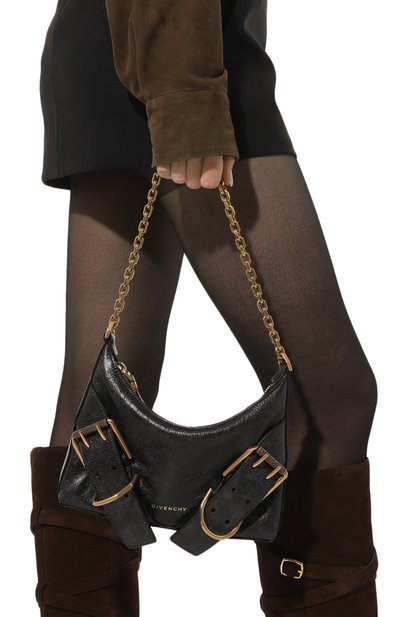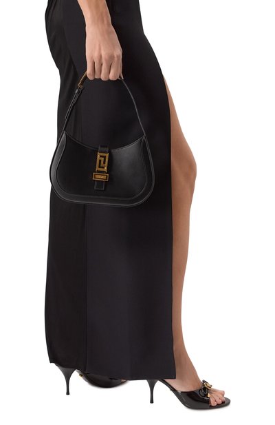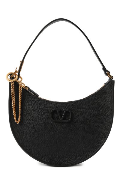 Небольшую полукруглую сумку VLogo Signature украсили одноименн ой эмблемой спереди. Аксессуар из зернистой телячьей кожи дополнили ручкой, которую можно удлинить с помощью вставки-цепочки с разъемными кольцами. Внутри — плоский карман.