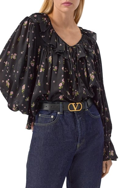 Ремень The Bold Edition VLogo средней ширины застегивается поворотным замком, встроенным в фирменную пряжку. Длина аксессуара из телячьей кожи регулируется скользящей конструкцией с двумя шлевками на задней стороне.