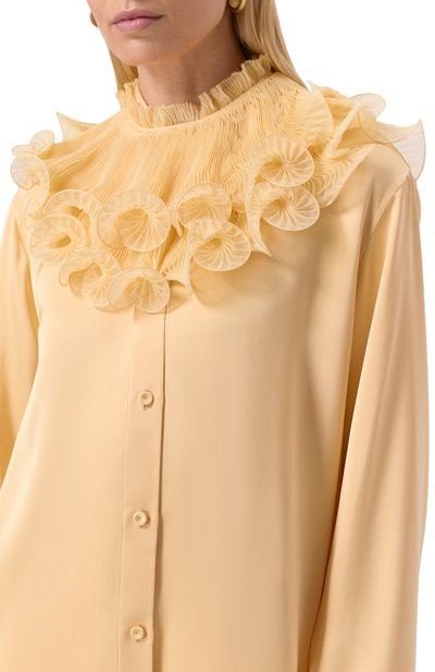 Манишка с ниспадающими асимметричными краями дополнили высокой горловиной в рубчик. Аксессуар из кашемировой пряжи с добавлением хлопка наши стилисты предлагают носить с худи и юбкой.