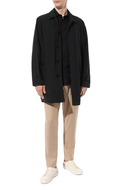 Рубашка из тонкой шерстяной ткани согреет в прохладную погоду. Модель с отложным воротником дополнили накладными нагрудными карманами с клапанами.
