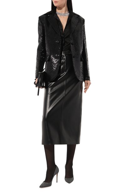 Туфли Lia с мысом анатомической формы и высоким цилиндрическим каблуком украсили миниатюрными серебристыми пластинами. Для пошива модели использовали мягкую матовую наппу.