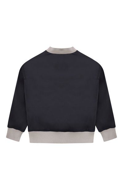 Бомбер из плотной ворсовой шерсти дополнили крупной геральдической нашивкой на спинке. Слева от планки с кнопками, скрывающей молнию, вышили логотип бренда. Плечи и рукава подчеркнули узким белым кантом, а трикотажные манжеты, воротник и пояс – полоской. Сбоку предусмотрели врезные карманы.