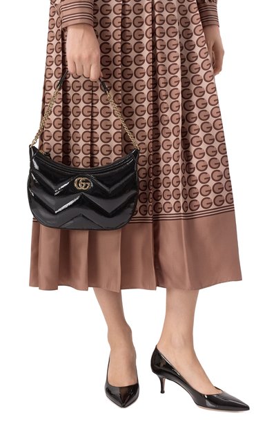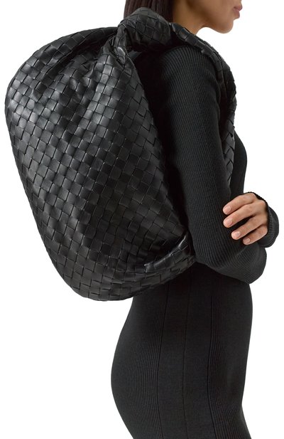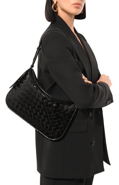 Сумку Hula Hoop из мелкозернистой телячьей кожи дополнили двумя ручками разной длины, сплетенными в технике intrecciato. Небольшая полукруглая модель застегивается молнией.