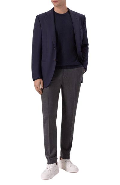 Брюки Berto с парой боковых и двумя задними карманами выполнили из шерстяной фланели. Посадку модели на талии можно отрегулировать ремешками по бокам эластичного пояса.