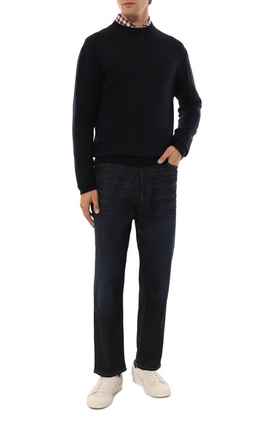 Пуловер с V-образным вырезом, эластичными манжетами и поясом выполнили из кашемирового трикотажа. Модель удобно носить и на голое тело, и в качестве верхнего слоя с футболкой.