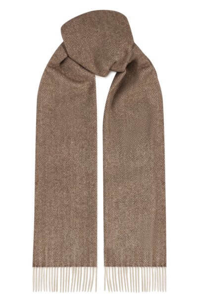 Шарф Sven с бахромой изготовили из кашемировой ткани с меланжевым шевронным узором. Длины широкого аксессуара хватит, чтобы дважды обернуть его вокруг шеи или завязать виндзорский узел.
