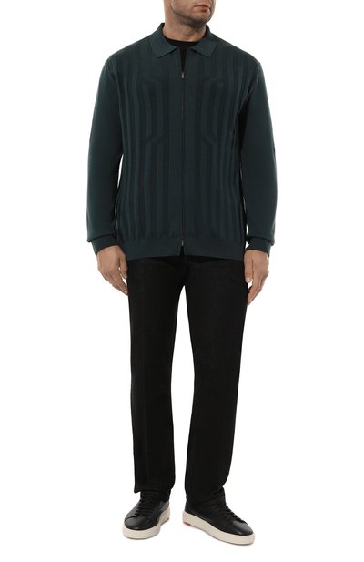 Свитер с рельефными арановыми узорами связали из шерсти с добавлением кашемира. Модель с высоким воротом в рубчик застегивается короткой молнией с кантом из замши.