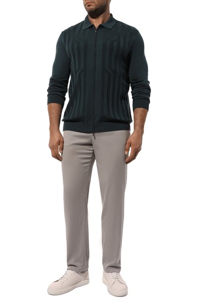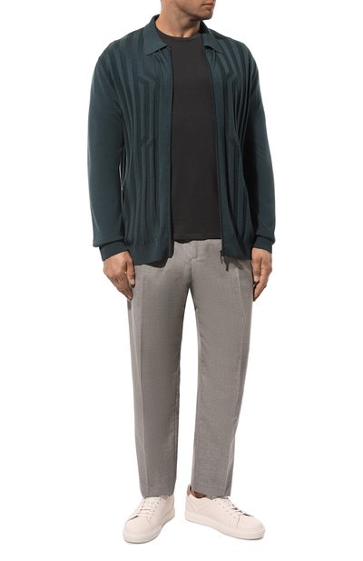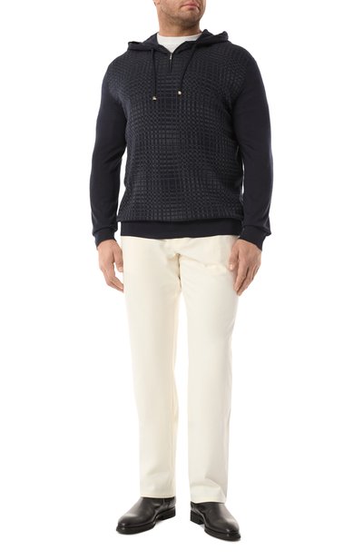Свитер с рельефными арановыми узорами связали из шерсти с добавлением кашемира. Модель с высоким воротом в рубчик застегивается короткой молнией с кантом из замши.