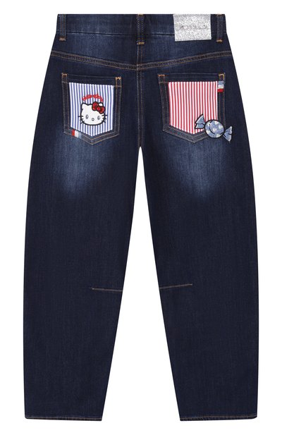 Выбеленные джинсы украсили аппликацией из цветочного кружева. Для пошива модели с пятью карманами использовали хлопковый деним. О принадлежности изделия марке говорит кожаный патч на поясе сзади.
