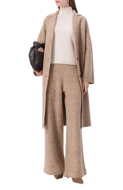 Широкие брюки с глубокими складками спереди и четырьмя карманами сшили из хлопкового вельвета с добавлением вискозы. Наши стилисты предлагают носить модель парным жакетом, водолазкой и ботильонами.