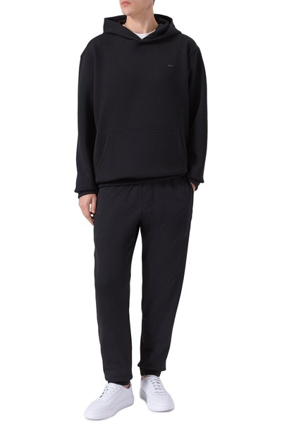 Худи с регулируемым капюшоном, эластичными манжетами и поясом выполнили из кашемира. Модель гармонично впишется в непринужденный повседневный образ с дерби и прямыми брюками.