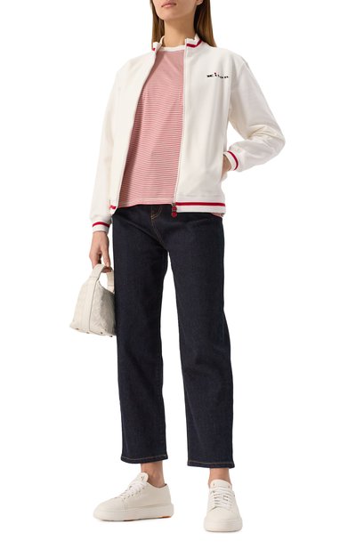 В коллекцию Travelwear вошла свободная толстовка из хлопкового футера Smooth. Модель с рифлеными воротом и манжетами в рубчик дополнили накладными карманами с клапанами и регулируемой кулиской по низу. Молнию подчеркнули знаковыми цепочками мониль.