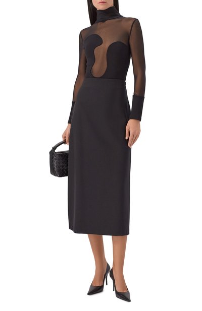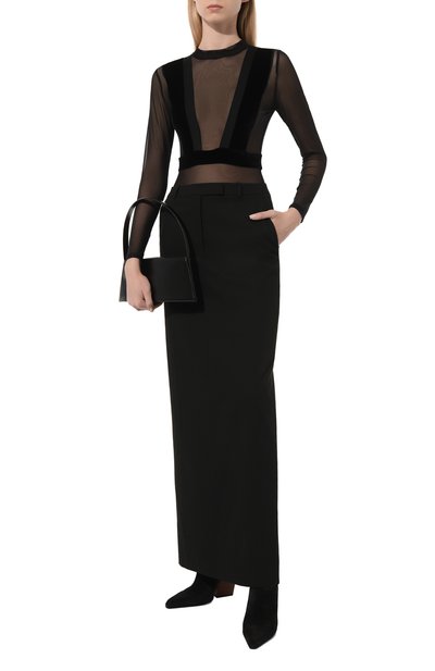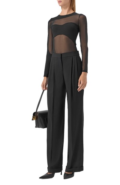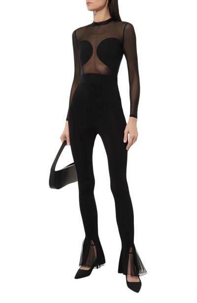 Прозрачное кружевное боди дополнено вставкой из эластичной сетки и ластовицей из бамбукового волокна. Облегающая модель застегивается потайной молнией на спинке и кнопками внизу.