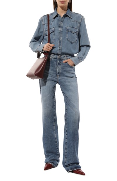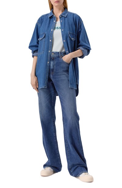 Для пошива рубашки использовали вельвет на основе полиэстера. Модель с двумя накладными карманами застегивается пуговицами с черепаховым узором. На левом рукаве — контрастный каллиграфический логотип бренда.