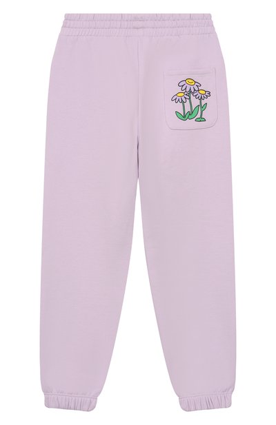 Джоггеры с вышитым логотипом выполнили из хлопкового трикотажа. Свободную модель с эластичным поясом дополнили боковыми карманами.