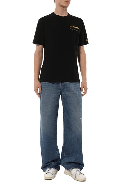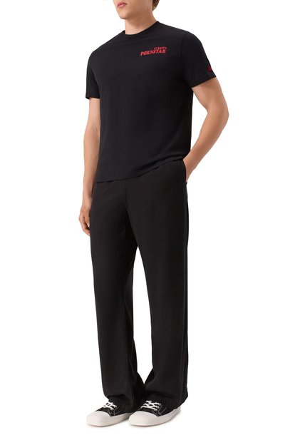 Футболка с круглым вырезом выполнена из хлопкового джерси. Модель прямого кроя украшена спереди ироничной вышитой надписью Ready For Hallowine, а сзади — брендированным патчем. На рукаве вышит логотип марки.
