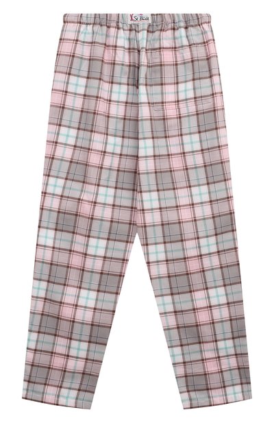 Свободные домашние брюки сшили из мягкой хлопковой фланели в разноцветную клетку. Модель с эластичным поясом-кулиской украшена сзади брендированным патчем.