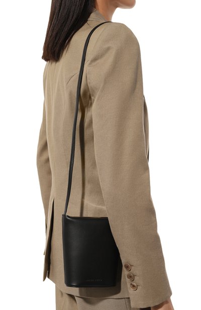 Сумка Cate из ягнячьей кожи застегивается магнитным замком. Аксессуар с жестким дном дополнен съемной косметичкой на молнии. В изделие с регулируемым плечевым ремнем поместятся кошелек и бумаги формата А5.