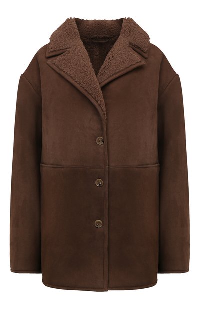 Свободную дубленку Cirebo сшили из тонкой овчины, произведенной из шкур ягнят после первой стрижки. Модель с широкими лацканами, напоминающую мужскую одежду, дополнили накладными боковыми карманами.