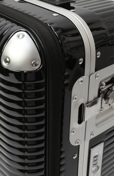 Чемодан Bellagio, подходящий для ручной клади, выполнили из переработанного поликарбоната и гладкой кожи. Модель с верхней и алюминиевой телескопической ручками и бесшумными мане вренными колесами закрывается кодовым замком и взломоустойчивой молнией. Внутри – компрессионные ремни и карманы-органайзеры с молниями.