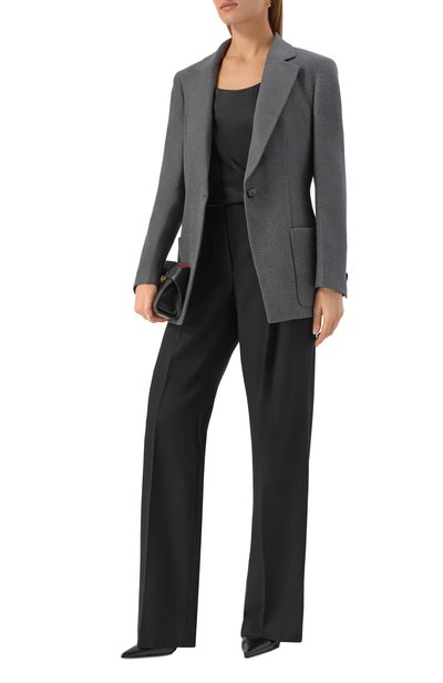 Приталенный жакет с шевронным узором поможет создать строгий офисный образ. По бокам – два накладных кармана. Модель с подкладом из шелкового атласа застегивается роговыми пуговицами.