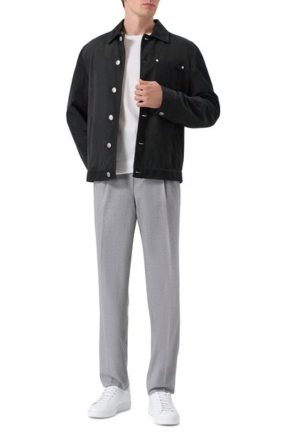 Куртку-рубашку с подкладом из полиамида и внутренним карманом на молнии сшили из замши. Сама прямая модель, как и два накладных кармана с клапанами застегиваются пуговицами.