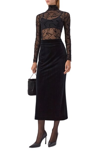 Боди с широкими бретелями сшили из эластичного нейлонового кружева с камуфляжным узором. Модель с перемычкой Oval D на каплевидном вырезе дополнили хлопковой ластовицей.
