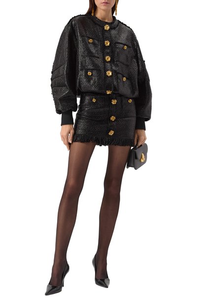 Для пошива куртки использовали комбинацию выбеленного денима и хлопковой ткани с жаккардовым узором Monogram Check. Модель с боковыми и нагрудными накладными карманами с клапанами застегивается золотистыми пуговицами с монограммой PA.