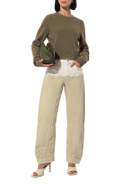 Джинсы Lisa сшиты из микса вторичного хлопка, вискозы и люрекса. Блеск поддержали съемной цепью, пристегнутой к ремешку слева. Справа разместили накладку, а на поясе – фирменный патч. Модель с необработанным нижним краем и разрезами сзади дополнили пятью карманами.