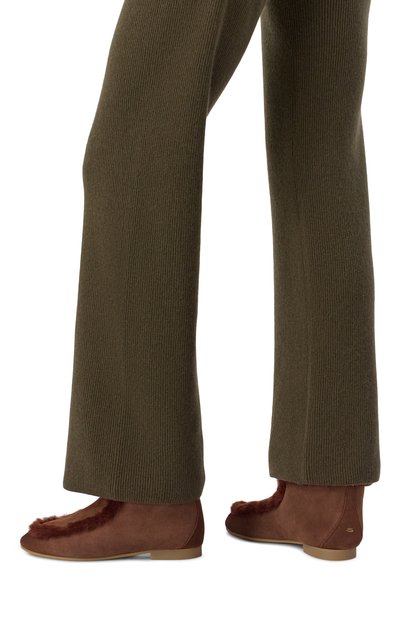 Замшевые ботинки Chukka с рельефным швом вдоль закругленного мыса установили на широкую резиновую подошву с протектором. Модель со шнуровкой дополнили внутренней отделкой из кожи.