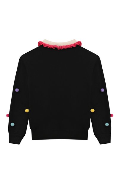 Укороченный двухцветный пуловер из пряжи на базе шерсти альпака подойдет для прохладных дней. Вывязанную спереди литеру B декорировали перламутровыми бусинами.