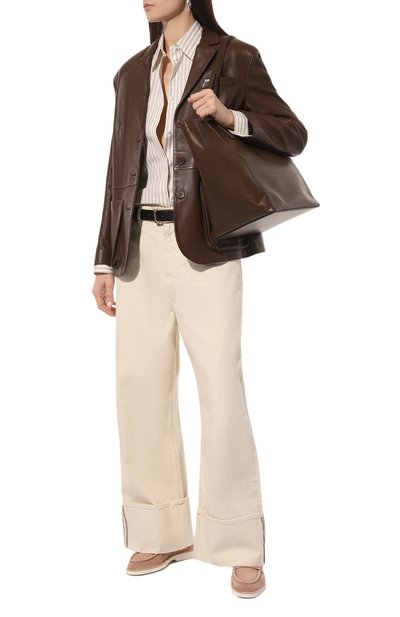 Пенни-лоферы Goldie с леопардовым мотивом выполнили из телячьей кожи с коротким ворсом. Пару установили на визуально массивную подошву с глубоким протектором.