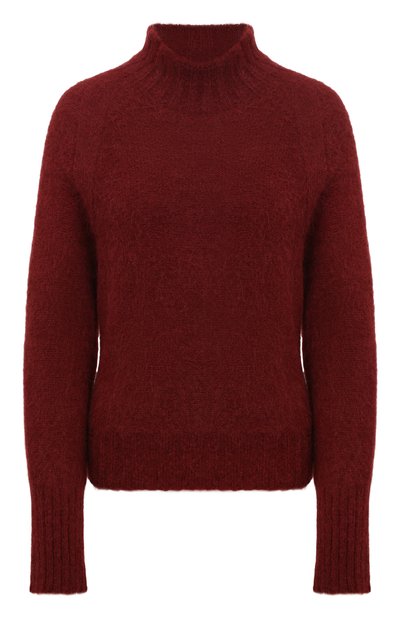 Прямой свитер с эластичными манжетами, поясом и высокой горловиной станет цветовым акцентом в образе с черными вещами. Для создания модели использовали ворсовую шерстяную пряжу, укрепленную полиамидом.