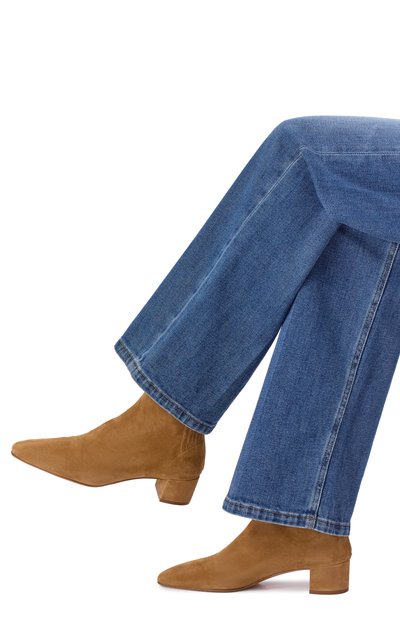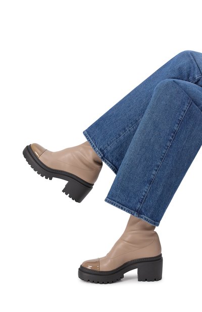 Ботильоны sr Nora с миндалевидным мысом, на широком каблуке средней высоты сшили из мелкозернистой кожи. Голенище дополнили узким ремешком с прямоугольной брендированной пряжкой.
