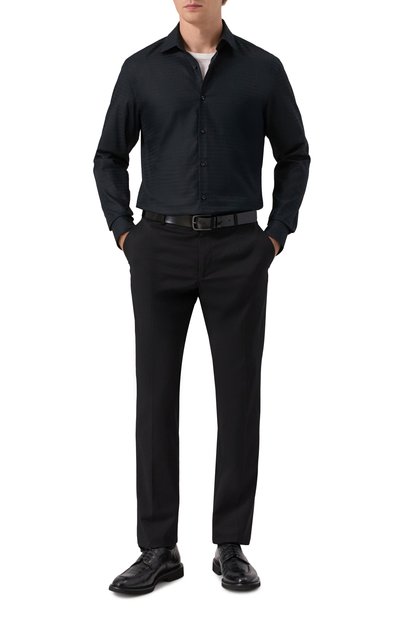 Для создания дерби с перфорированным узором выбрали гладкую кожу. Готовую пару с отрезным миндалевидным мысом отполировали до глянцевого блеска.