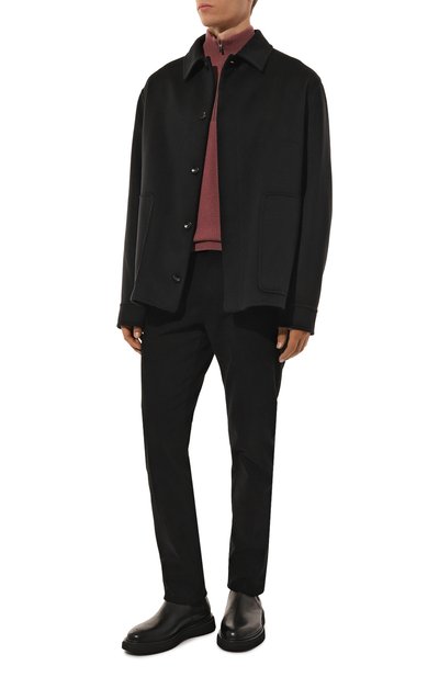 Парку с внутренним и двумя внешними карманами сшили из полушерстяной ткани Loro Piana с обработкой Storm System. Тонкий капюшон спрятан в воротнике-стойке, отделанном изнутри шерстяным трикотажем. Модель с шелковистым стеганым подкладом застегивает ся молнией, прикрытой штормовым клапаном с кнопками.