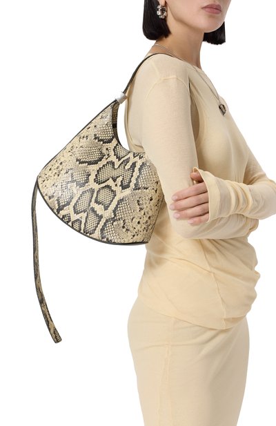 Стеганую сумку-хобо Glam Slam с регулируемой ручкой изготовили из мягкой наппы. Аксессуар и внутренний карман застегиваются молниями. На принадлежность марке указывает патч с числовой эмблемой спереди.