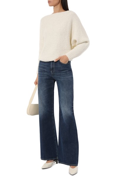 Свитер с вырезом «лодочка» органично впишется в образ в любой цветовой гамме. Модель из шерсти первого пострига украсили эмблемой VLogo, вышитой нитью в тон над поясом в рубчик.