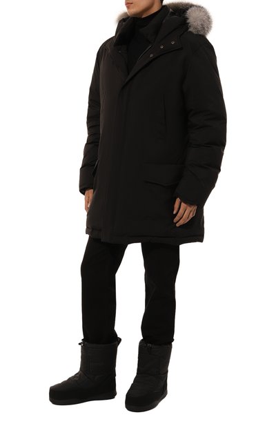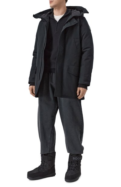 Сапоги Laax из искусственной кожи утеплили овчиной. Верх с высокой шнуровкой, широким ремешком и резиновыми деталями установили на протекторную подошву Michelin. О происхождении обуви говорят эмблема и логотип на заднике.